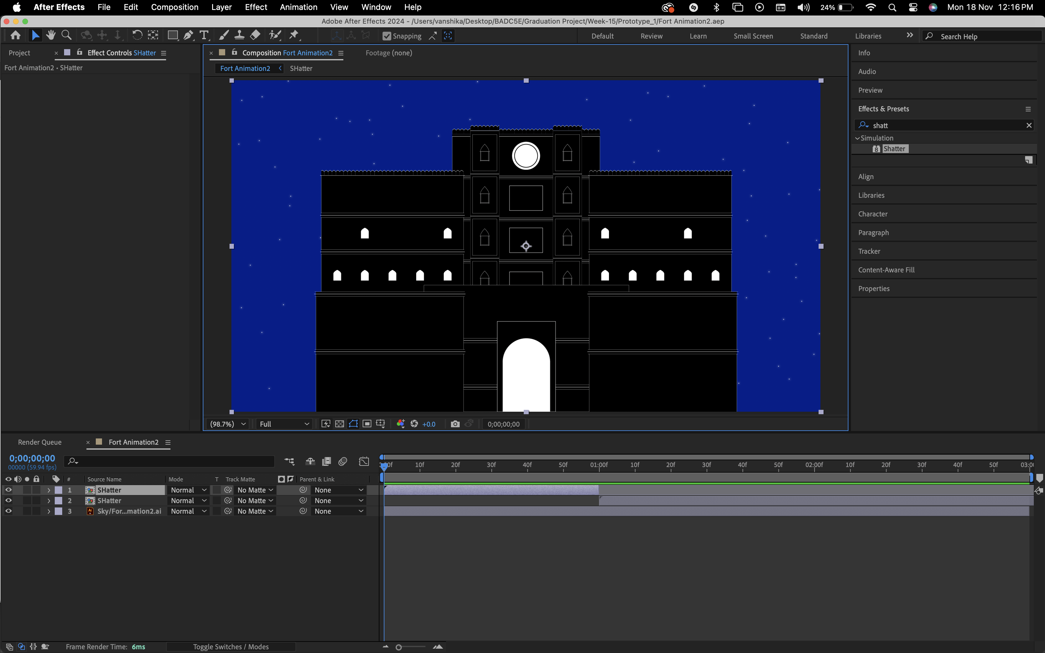 I was actually quite conscious about the visual style because I wanted the visuals to be solid and clean and didn't want to have too much layers to look at. So I had decided to base the visual for the first part of the narrative - 'the construction of the fort'