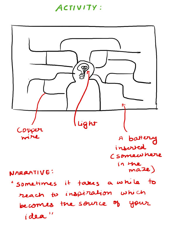 I drew out a sketch of the activity and a user-journey. Materials I got for this: (A copper tape, LED, battery, Scotch Tape)
