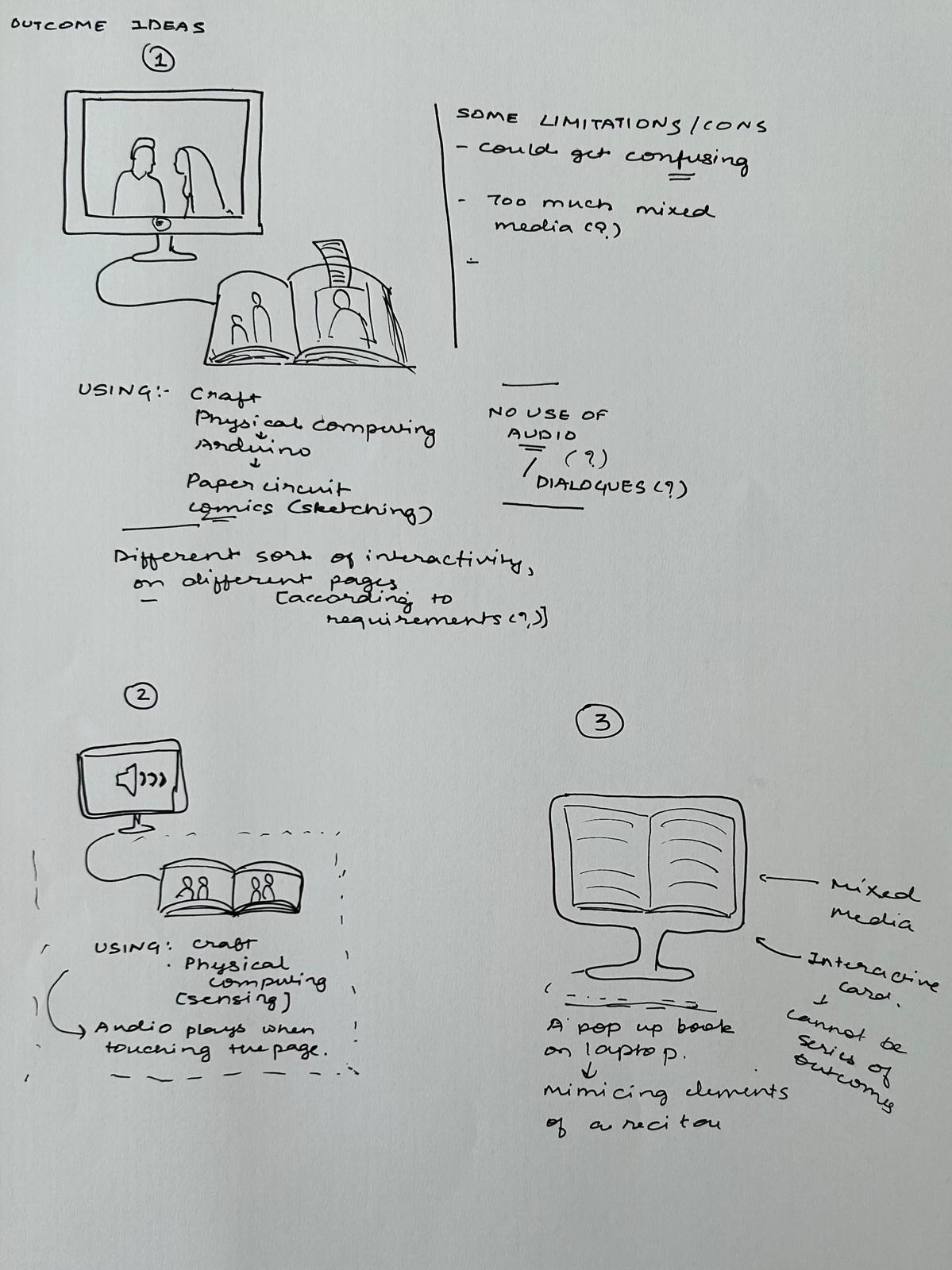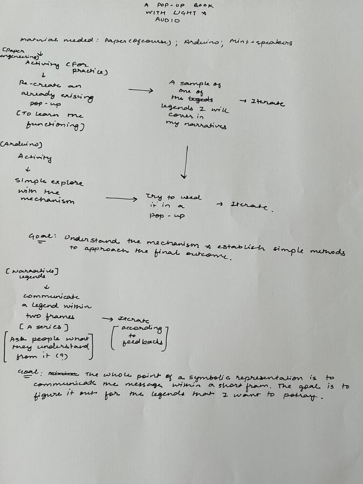 I started brainstorming ideas about what sort of outcome would I want and after a while it was clear to me that I wanted to stick to a pop-up book. And think about the use of multimedia in my book as I progress.
