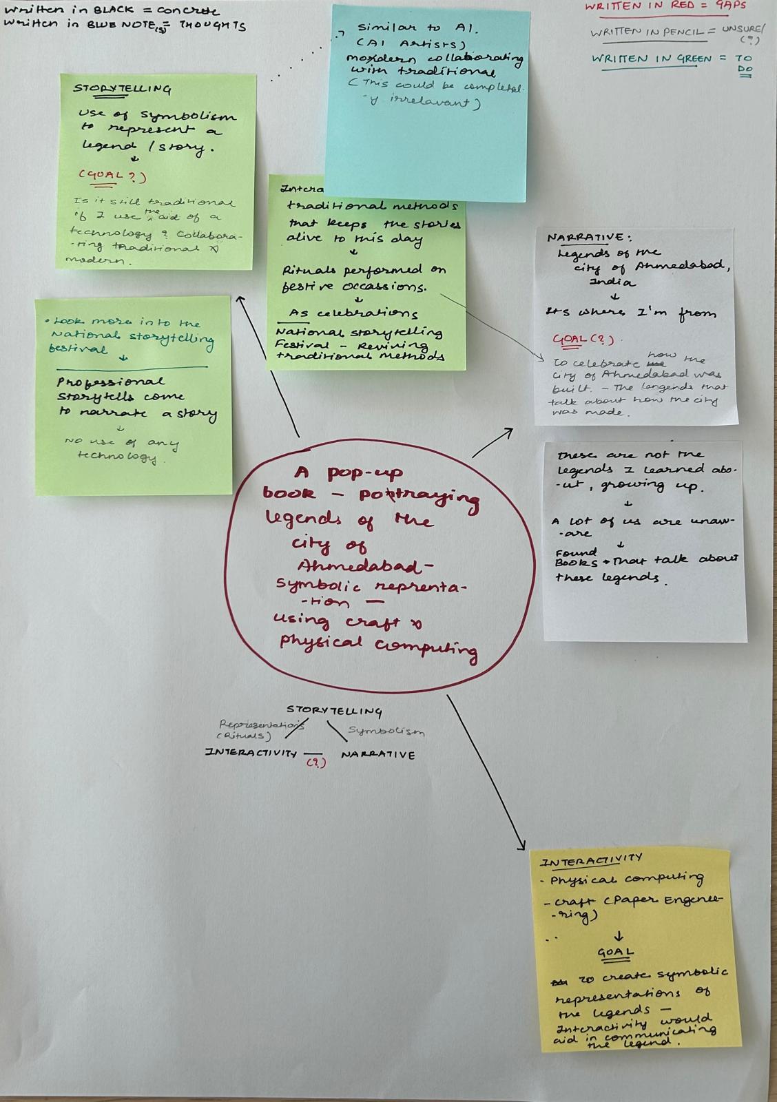 2. I was confused about what to base my title on because there were two things: Interactive Storytelling and the Legends of the city Ahmedabad, India. But I realised the core of my concept is exploring the following three things: paper craft, physical computing and symbolic representation for storytelling purposes. So I thought ‘Interactive Storytelling’ would be more appropriate.