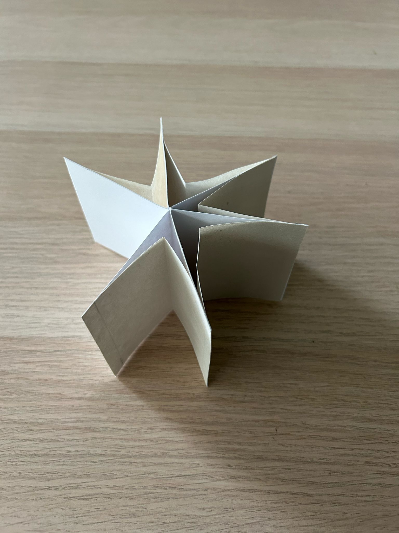 By the end of last semester, I had found a reference for how the book structure could be for my artefact - a star book also known as ‘Carousel Book’ (reference - The art of pop-up by J.C.Trebbi). I made a small prototype of the book structure to understand how it is made.