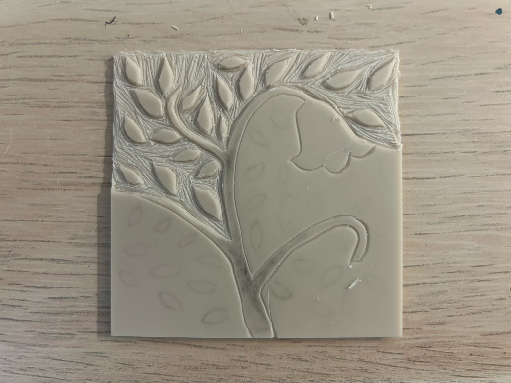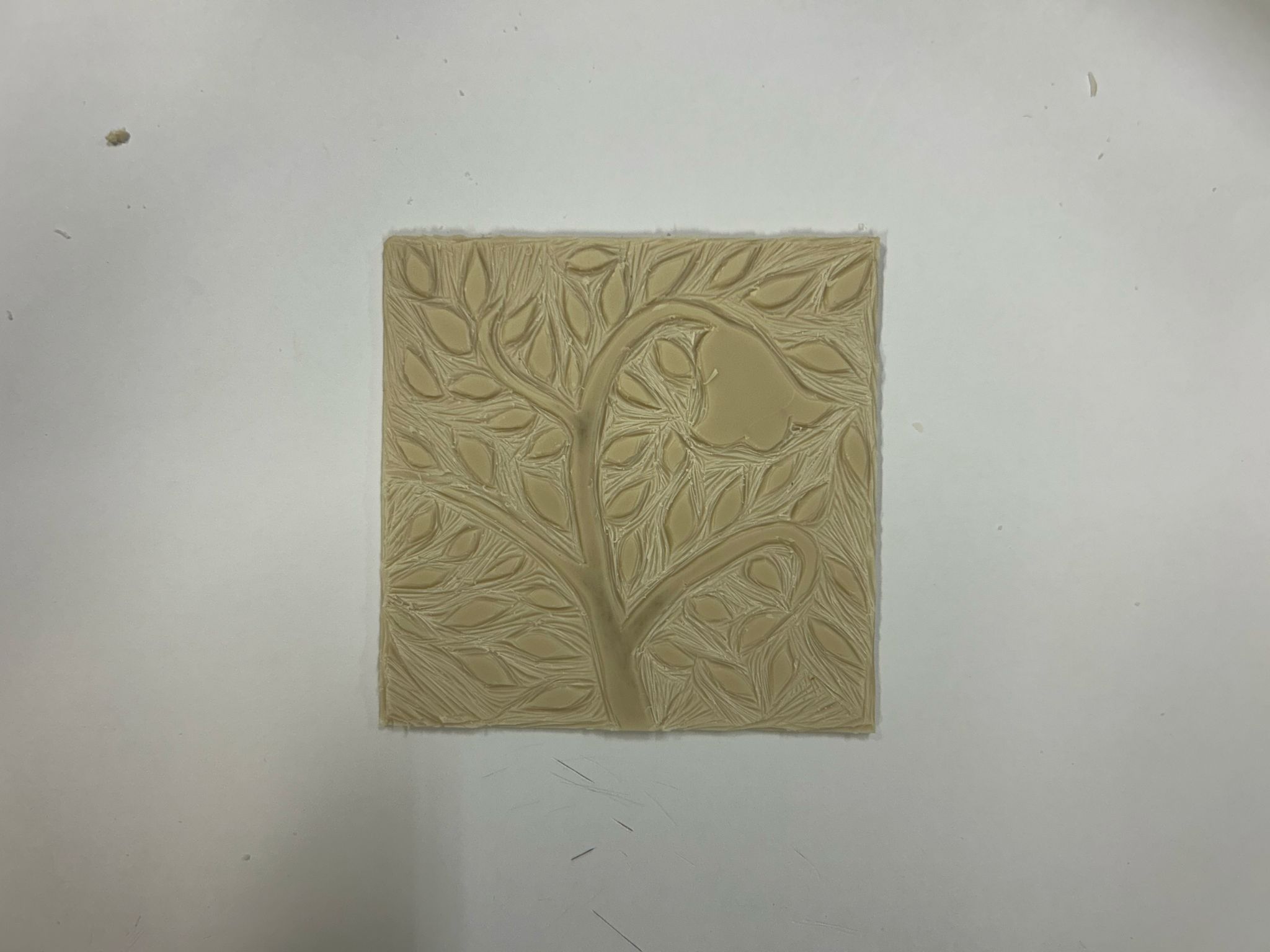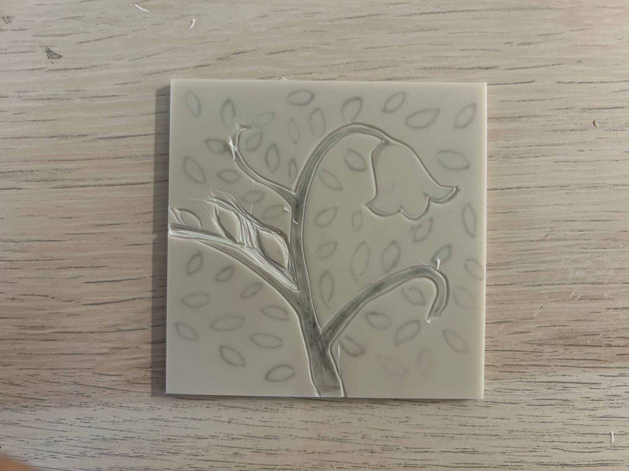 Just carving the lino took more time than I had anticipated. Last week, I had destroyed one lino, however this week I wanted to try and be a bit subtle with the lino while carving the design onto it. It was going quite well and in the lab session with Andri and Vincente, they mentioned that I don't have to carve so deep. I could also use a pvc-lino sheet that has different colours or I could paint the soft-lino sheet with a colour different than the sheet considering that once I can see a different colour, I don’t have to carve any deeper. I was successfully able to carve this visual, however I also realised I needed a bit more practice.