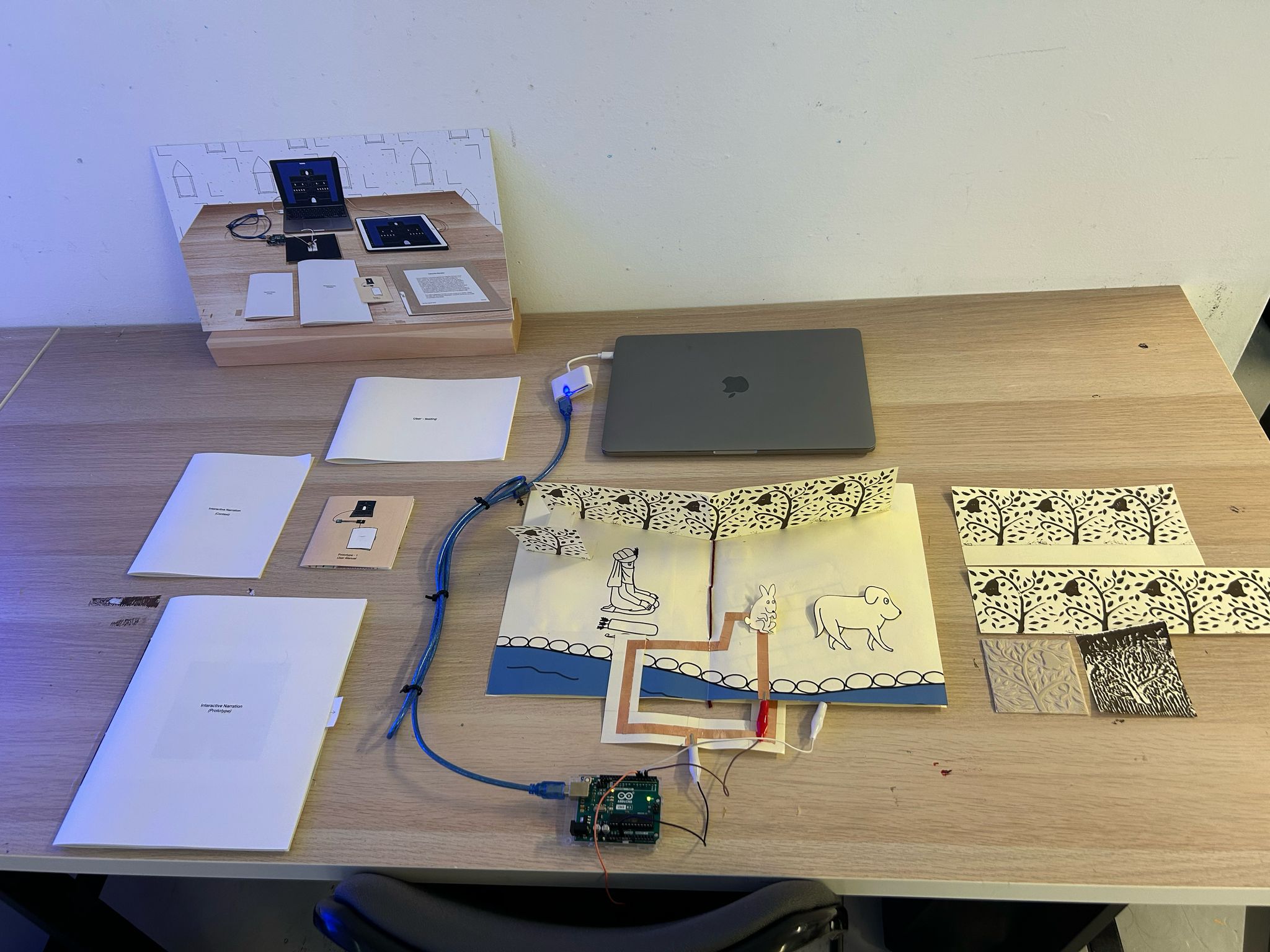 Before the set-up started I was a bit worried. I didn’t think I had been doing well. I have been working really slow this semester and I was worried the second prototype that I made wasn't good progress. However, Andreas mentioned that it is good that the prototype is there and that I have simplified the mechanisms used in the storybook. However, using a fabric just to use it didn’t seem like a great idea. So far there doesn’t seem any purpose for using fabric. Additionally, just user-testing with 6 participants is not enough and it would be great to document when the participants interact with the storybook to be able to provide evidence for key observations.